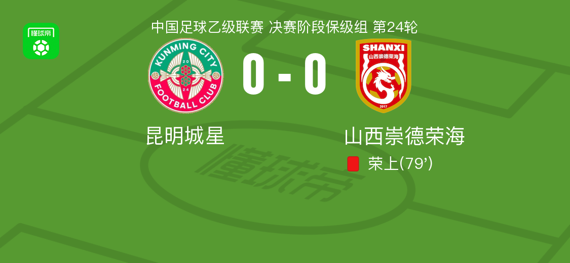 北京时间8月31日中国足球乙级联赛 决赛阶段保级组 第24轮,昆明城星主场对阵山西崇德荣海。最终比分昆明城星 0-0 山西崇德荣海。